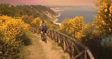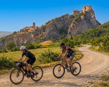 Oltre alla strada, la Romagna offre splendide ciclabili che collegano il mare alle colline, attraversando paesaggi autentici e portando a borghi dove fermarsi nelle tipiche osterie per gustare esperienze culinarie genuine e indimenticabili.