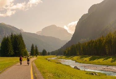 Pedaleremo tra vette maestose, malghe e rifugi alpini, circondati da panorami che tolgono il fiato. Qui tra le Dolomiti, l'unico limite è la tua voglia di esplorare e scoprire la natura nella sua forma più pura.